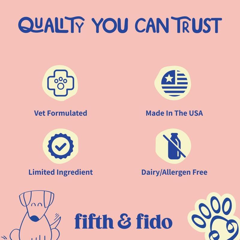 At Fifth & Fido®, we prioritize speed and focus. Orders are processed within 24 to 48 hours (excluding weekends and holidays). Current delivery time is between 5 to 10 business days.